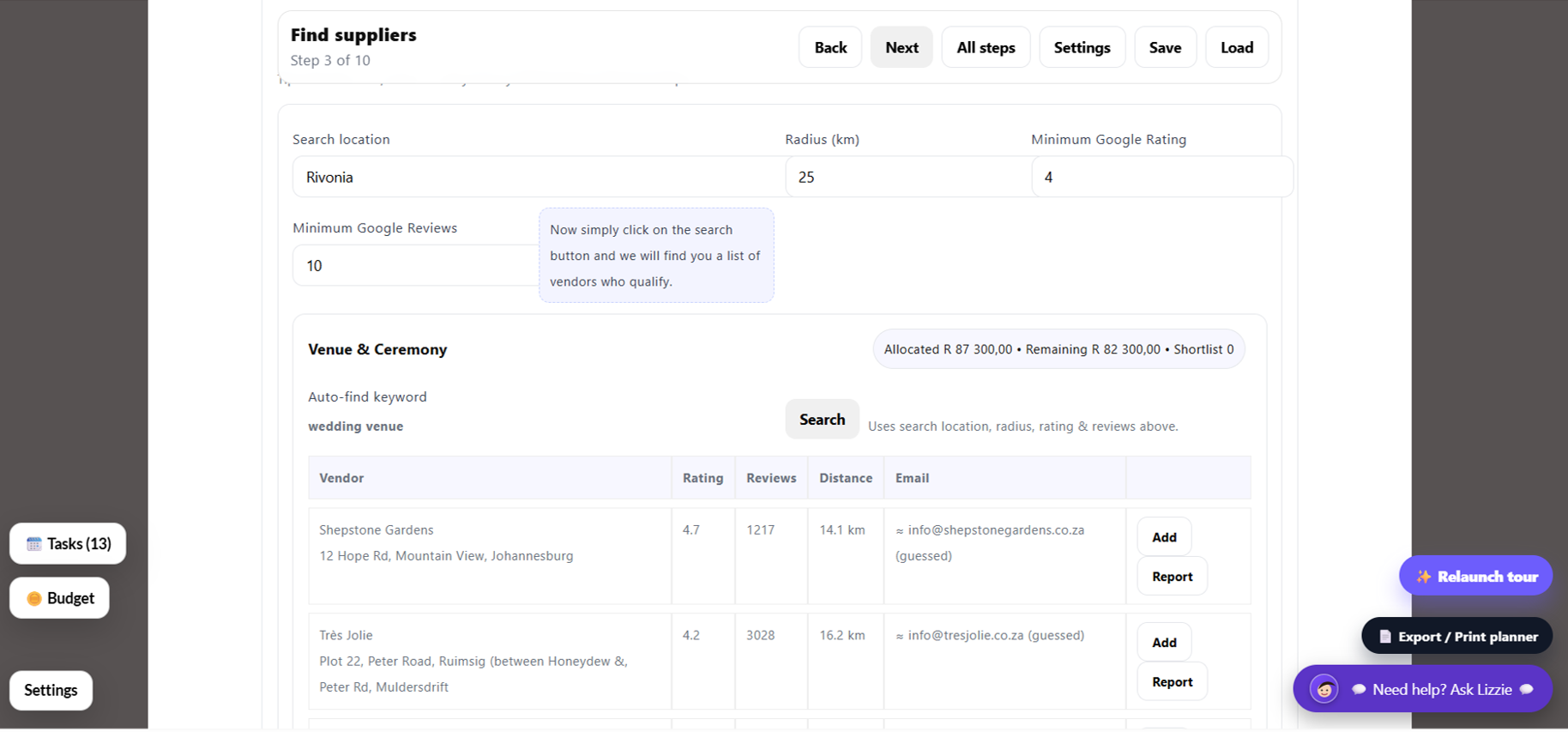 Yes — it’s designed to track your budget and keep vendor shortlists organised.